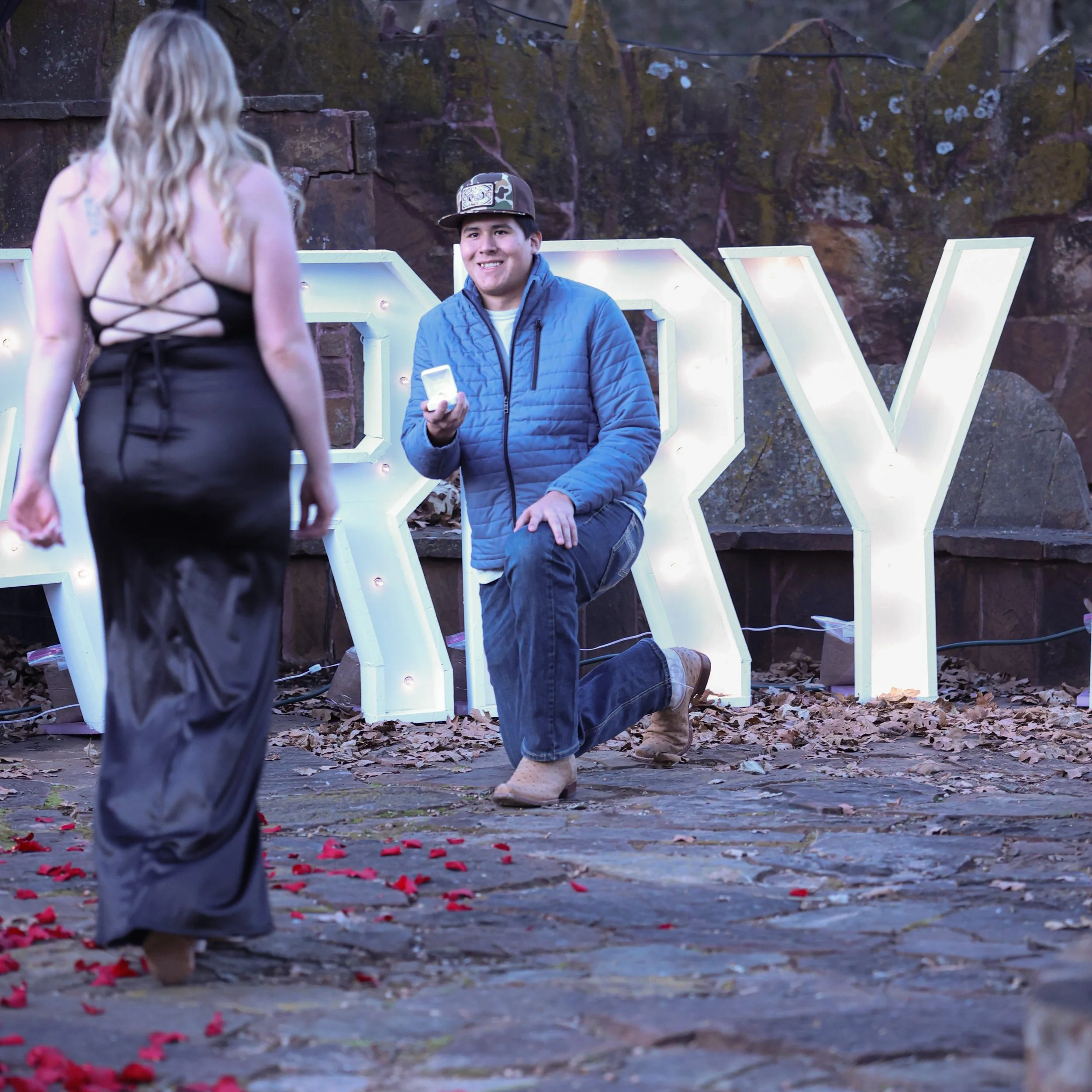 Our oversized MARRY ME marquee letters create a timeless, romantic backdrop for proposals of all styles. Perfect for those who already have a location and plan in place, but want a bold statement moment.